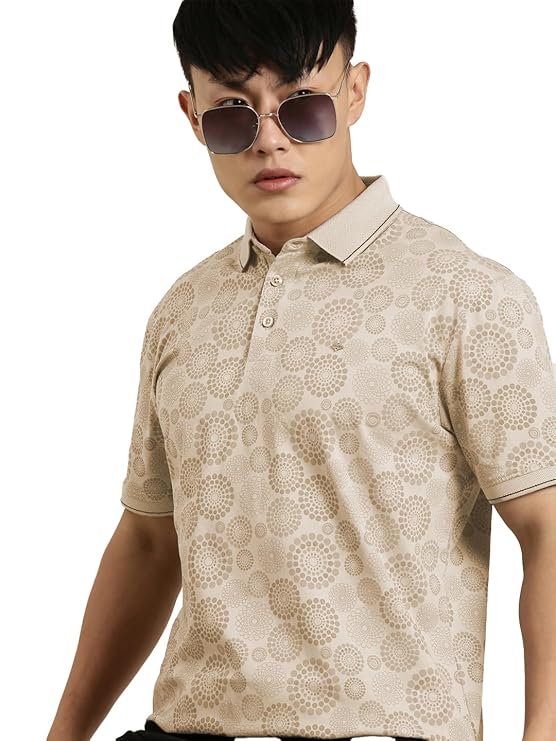Men’s Printed Polo Neck Half Sleeve Regular Fit Mercerised Cotton T-Shirt